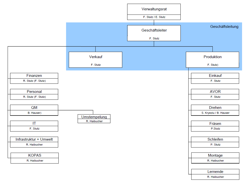 Stutz Mechanik ist wie unten stehend organisiert. Rechts finden Sie das Organigramm auch als PDF-Datei.